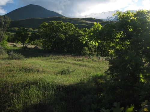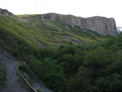 | Trip Report: | I started this day at one of the trailheads to the Bonneville Shoreline Trail, and hiked up a couple of hundred feet over 0.7 miles to the Dry Canyon Trailhead. The trail starts right out from the Dry Canyon trailhead with steps -- not easy for anybody with short legs as the steps are rather high. In the first half mile, the trail is beautifully maintained and is a joy to hike. It passed through several towering rock cliffs and is mostly open or in oak scrub. After the first half mile, I passed the Curley Springs trail junction and at that point the Dry Canyon Trail became less steep. The next 2 miles grew difficult, however, as the uphill grade never relented. Gradually, the trail passed through oak scrub, into a maple forest that is so thick you can see little around you except the trees. For me, it seemed like an endless uphill, and without being able to see the pass above or anything because of the woods, it was hard to keep pushing on without a goal in sight. Also, in these woods, the trail increasingly showed the signs of heavy use, being worn down by 2 feet or more in many places. Finally, the trail opened up a bit and the highest ridge could be seen. At this point I passed through groves of quaking aspen, not yet in leaf. The trail itself has a number of stretches that were snow covered, and this was on the south-facing slope. After passing through a forest of aspen, the trail opened out on the ridge top. At 8300’ this is the high point of the trail, and it was covered in about a foot of snow, and blasted by gusty, icy winds. After shooting a few pictures on the cold ridge top, I started my descent. The trail was not visible except in a few places, but from that I could discern where the switchbacks were and pretty much was able to keep to the trail. I could have bushwhacked here, I suppose, except that the snow was very dense and packed and offered little traction – very slippery. At one point, the trail switched back into a fir forest and in there I found 3’ deep snow. I didn’t posthole more than 6 inches, so this actually made for better walking than the rest of the snow-covered trail, where I had to walk digging my heels into the snow. After about a mile of this snow walking, the trail finally dropped down far enough to get below the snow. It was not as cold, of course, and the farther I descended from the high ridge, the warmer it got. By time I got to the trail junction with the Battle Creek Trail, I was warm, even sweating, again. The trail down the next mile or so was rocky and steep, the worst kind of descent for me, except that it was, at least, dry. At Curley Springs Trail, I crossed Battle Creek rockhopping, and started up the other side. For the next mile, the trail was steep and incredibly mucky. This was the most difficult hiking of the day – a 700’ climb with nothing firm to put my feet on. In due time, however, the trail reached the high point and instantly changed to a bone dry trek through sun washed oak scrub. The evidence was everywhere on the trail that it had recently been just as mucky up there as on the northern slope. And, not enough traffic to pound down the ruts and dried footprints had yet passed through. It was easier than the muck, but it was rough on the feet. From this point I had great views of Provo and the southern part of Utah Valley. After turning back onto the Dry Canyon Trail, I was treated again to that dramatic gateway into this canyon. By time I got back to the trailhead, I was really wishing that I had not parked 0.7 mi away, but at least the last bit was not hard. |